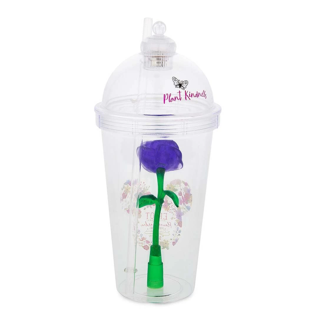 Beautiful flowers light up everyone’s day, but the purple flower inside this tumbler literally lights up. The floral Mickey icon on the outside of this clear tumbler with straw features the Epcot International Flower & Garden Festival 2018 logo.