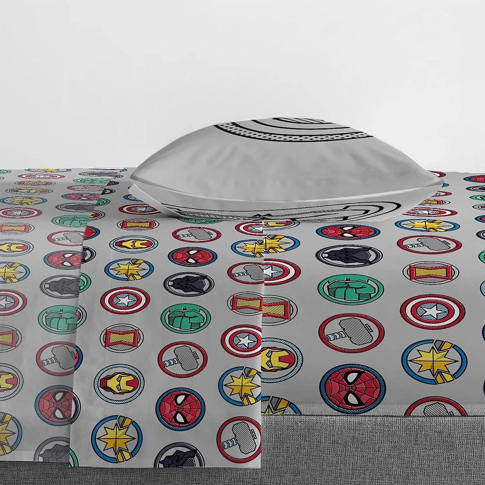 - Sheets feature allover Avengers icon print