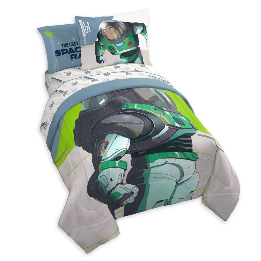 Give your room an intergalactic makeover with this bed set inspired by Disney and Pixar’s Lightyear. The set includes super soft microfiber comforter, fitted sheet, flat sheet, shams, and pillowcases. One side of the comforter features an all over print inspired by the film while the heroic space ranger, Buzz Lightyear, is ready to go to infinity and beyond on the other side.