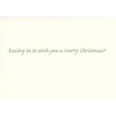 The front of the card is Lightning McQueen from the movie “Cars”. On the inside it says “Racing in to wish you a Merry Christmas.”