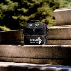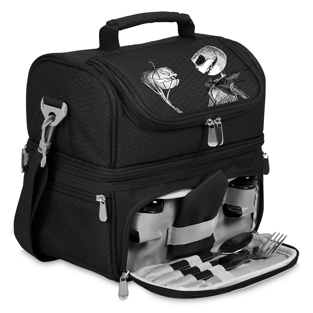 Beware! This hauntingly stylish cooler bag features the bone-chilling image of Jack Skellington, master of fright. With separate sections for warm and room-temperature foods, plus a compartment containing silverware, salt and pepper shakers, and a napkin, this bag has everything you need for a frightfully fun picnic.