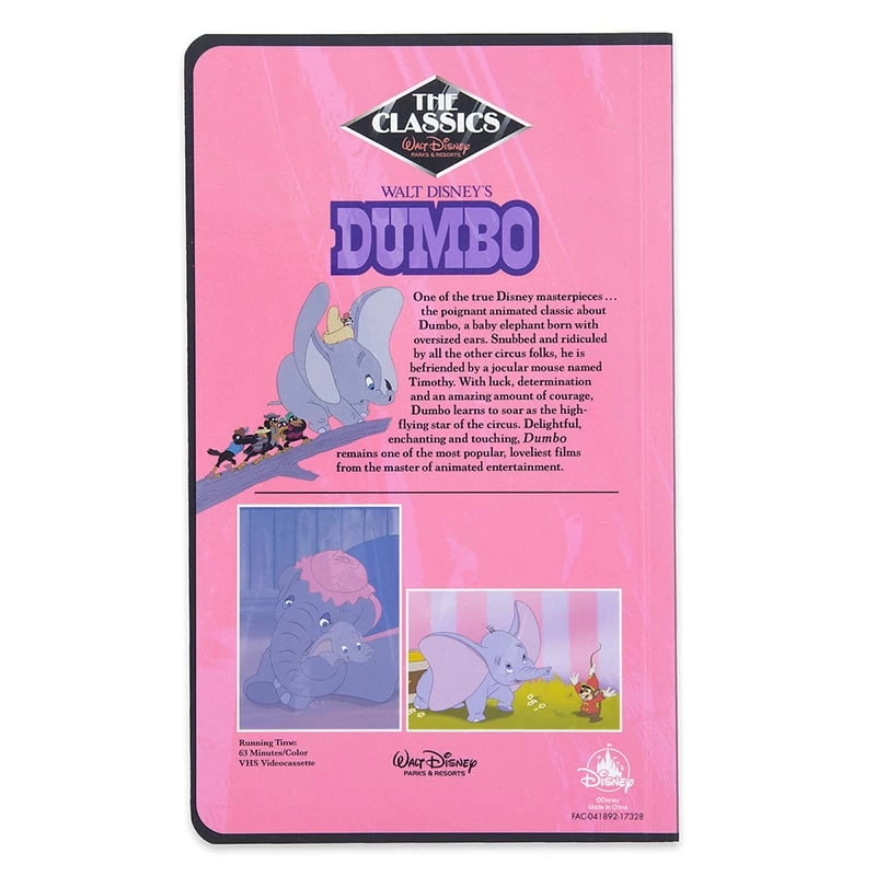 - Softcover reproduces VHS clamshell case art for Walt Disney’s Dumbo