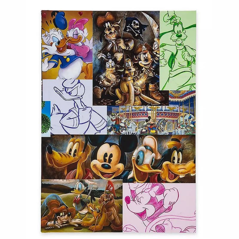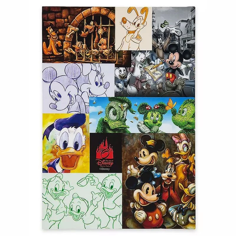 Celebrate The Art of the Disney Theme Parks with this journal featuring Mickey and his friends. The perfect bound cover has a colorful montage of artwork picturing Mickey, Minnie, Donald, Pluto, Goofy and more in a variety of Parks-related scenes. Each tile in the mosaic is a piece of artwork that has been produced by Disney Parks artists over the years.