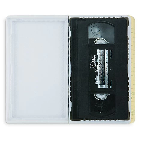 Relive nostalgic days of Disney Classics on VHS tape with this softcover notebook journal featuring pre-lined and graphed pages, plus a glossy cover reproducing Aladdin clamshell case cover art.