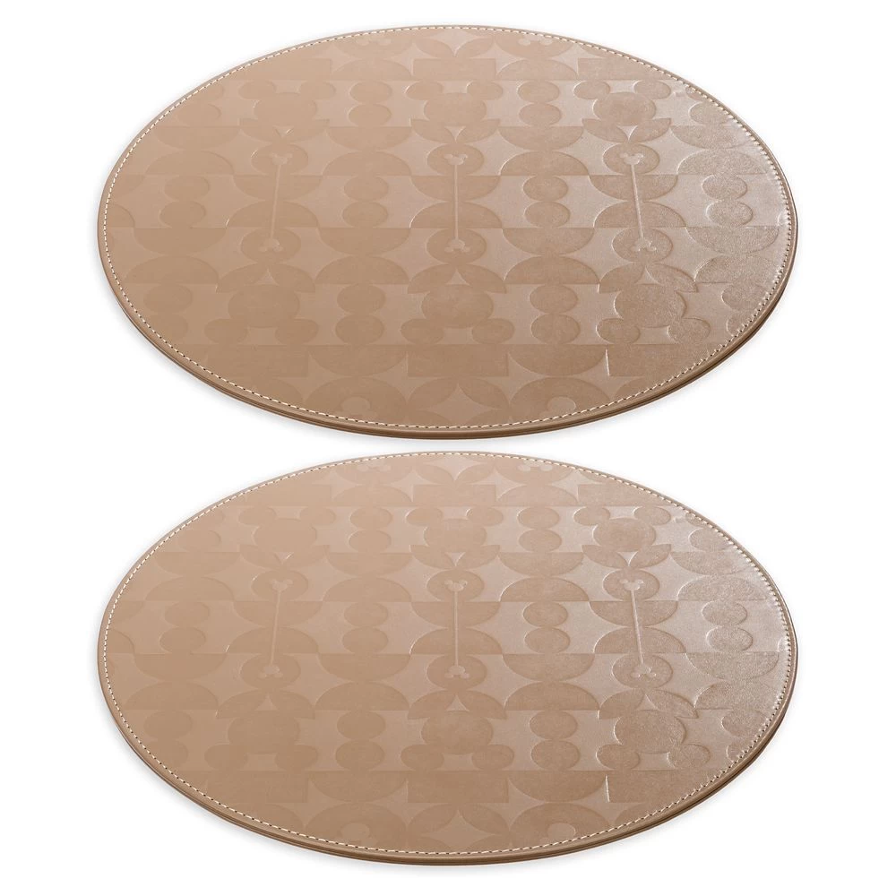 Meal times are always more enjoyable when Mickey’s around, which is why these circular placemats will make a great addition to your table. The simulated leather design is embossed with an allover geometric pattern incorporating Mickey icons and edged with contrasting stitching. It’s a great way to add character to your home.