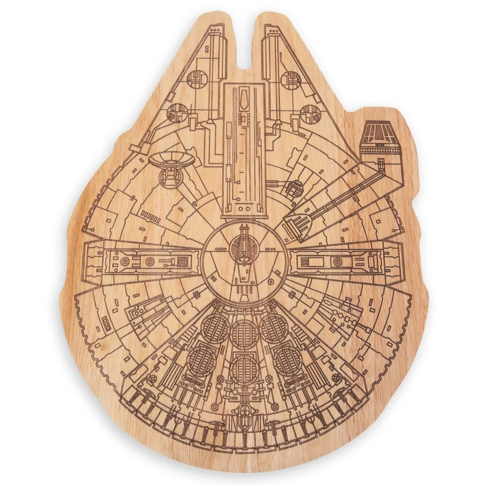 Smuggle all kinds of delights to your table with this Millennium Falcon wooden serving board. Made in eco-friendly parawood, it’s shaped in the form of the legendary Corellian ship piloted by Han Solo, with engraved schematic layout. This Star Wars serving board is ideal for cheese, charcuterie, desserts and appetizers. It makes a fantastic housewarming, birthday or holiday gift, but it’s just as good at bringing the Force to your own kitchen.