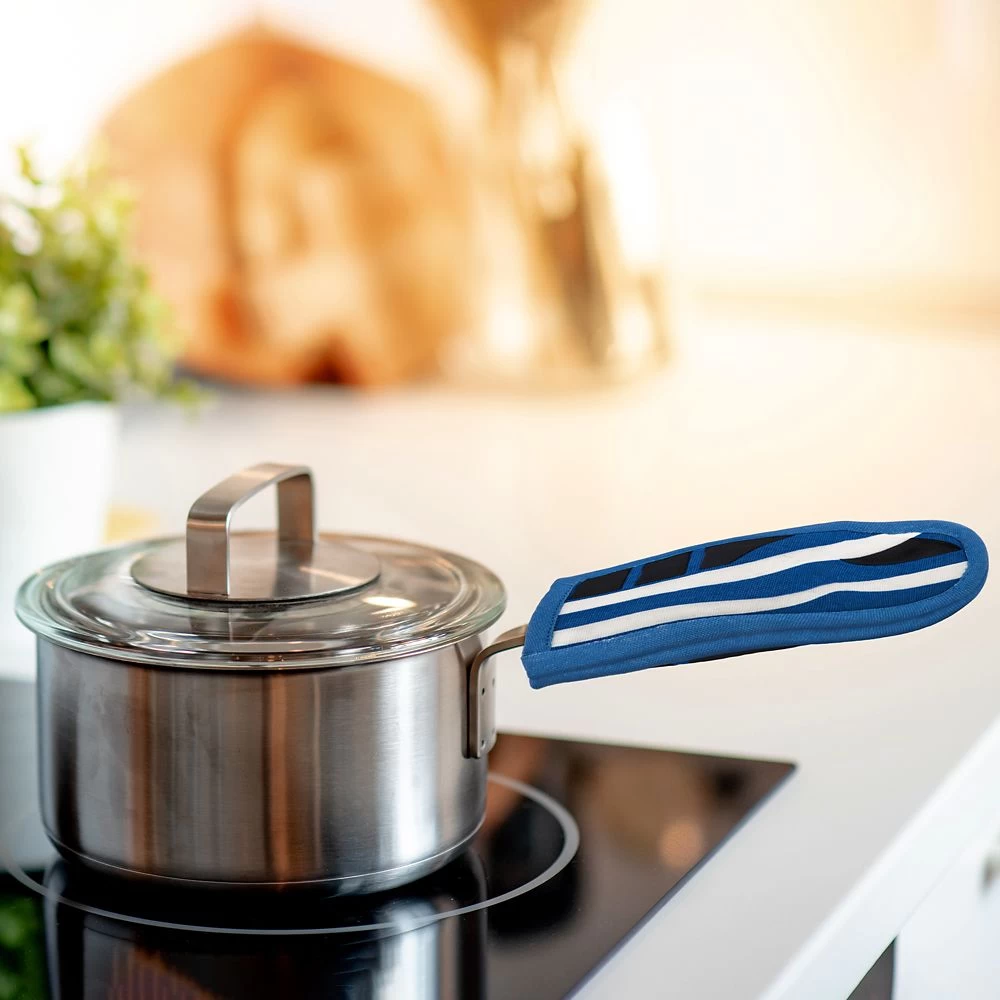 - Set of two Monorail pot handle holders: one red design and one blue design