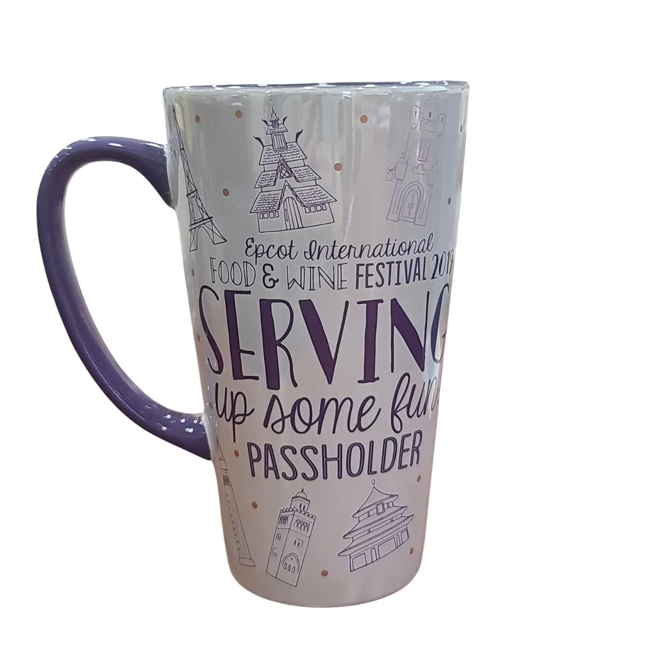 Mickey is brewing up delightful new recipe ideas on the side of this tall mug. In addition to being a festive souvenir of the 2019 Epcot International Food & Wine Festival, this cup is a colorful way to enjoy your morning beverage.