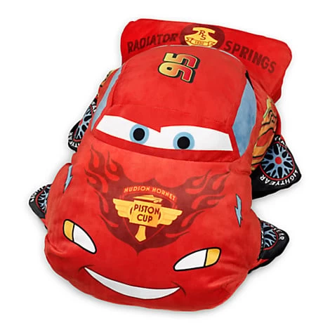 Treat your home interior to a premium package with Lightning McQueen’s soft and luxurious plush pillow! Drift-off to dreamland excursions, on a fluffy reversible pillow that poses as a stuffed toy when you secure his belly strap!