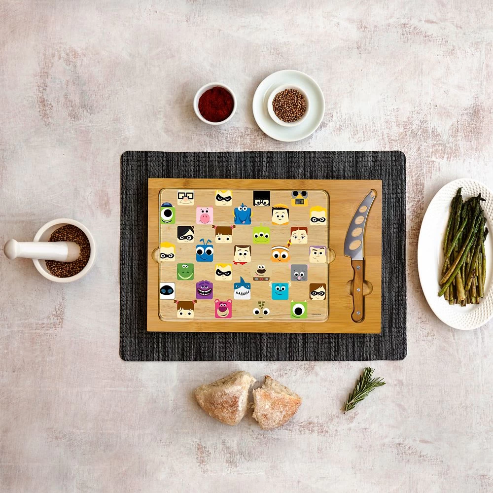 All your favorite PIXAR characters make this colorful Glass Top Serving Tray and Knife Set a cut above the rest. Mr. Incredible, Woody, and Dory are among those pictured on the tempered glass top which can be used as a cutting board or serving tray.