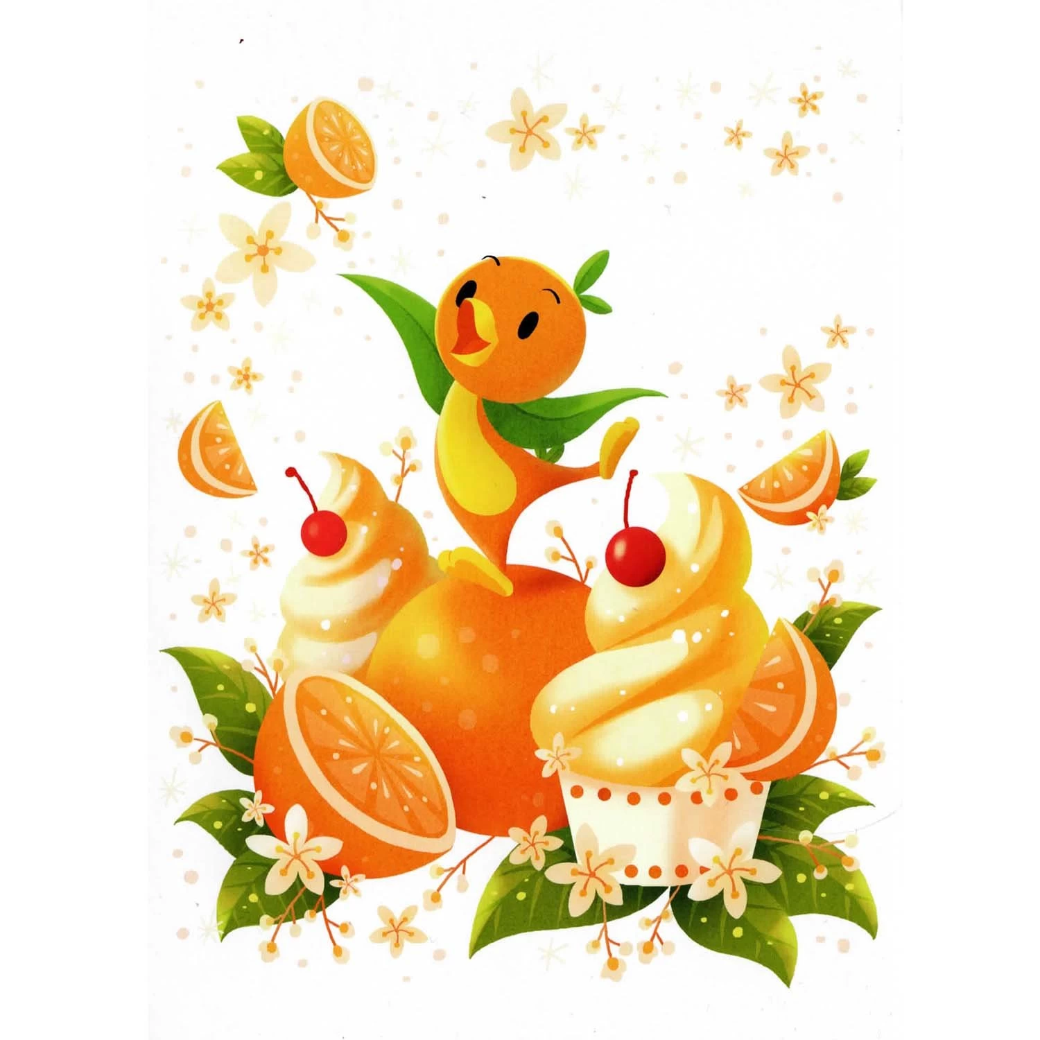 A happy Orange Bird sings and dances on a sea of citrus swirl on this postcard with ”Happy Orange Song” artwork by Eunjung June Kim. WonderGround Gallery postcards allow you to send a magical piece of art from Disney parks to a loved one or frame up a mini art collection on your wall so you’ll always be surrounded by the enchantment of Disney art. Collect them all!