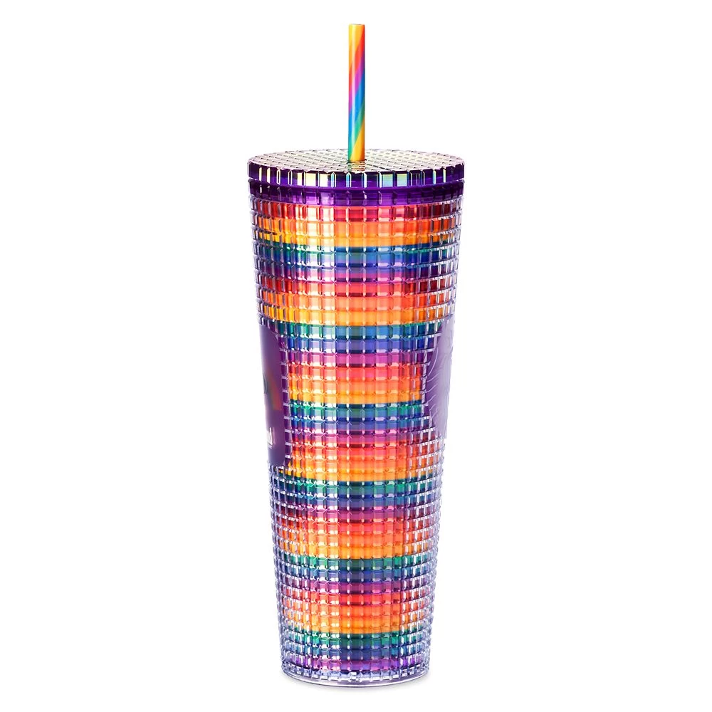 Refresh happy memories of The Most Magical Place on Earth with this Starbucks® tumbler. Part of the Disney Pride Collection, the allover dimensional design reflects the rainbow pattern beneath, creating a sparkling effect. The translucent lid includes a reusable swirling rainbow straw, while Mickey’s smiling face beams above the Walt Disney World logo.