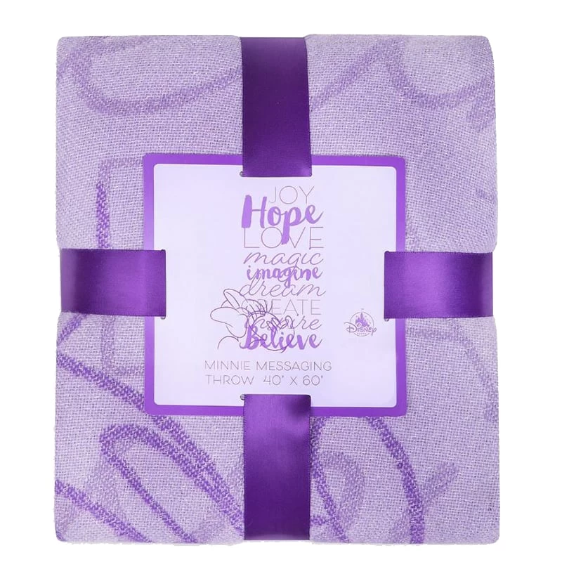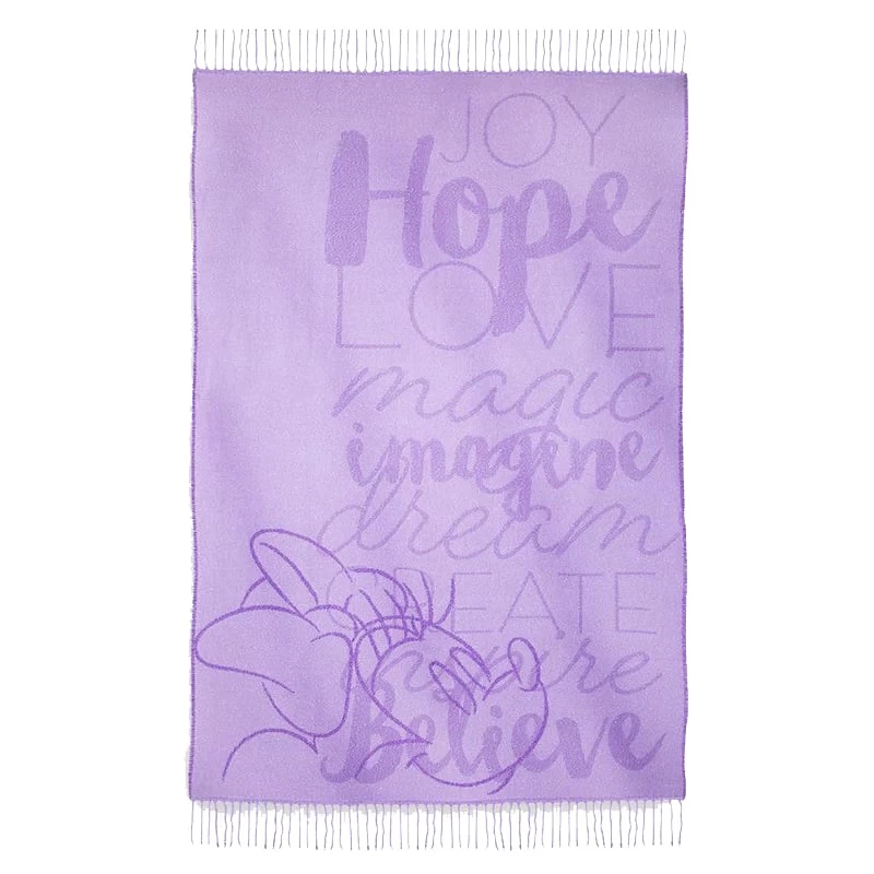 Minnie is ready to inspire your décor with this soft cozy purple throw that features Minnie’s smiling face and a series of stacked words. Add a little ”Joy Hope Love Magic…” and more with this warm, fringed blanket.