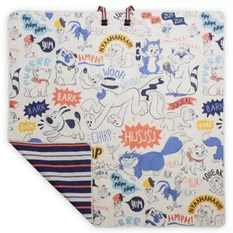 Now you can lie around and relax in the company of many of your favorite Disney critters with this throw rug. One side of the reversible quilted design features an allover print of characters including Meeko, Pluto, Marie and Figaro while the other side features a colorful striped print. The throw comes with an attached strap so you can roll it up and carry it over your shoulder for on-the-go convenience and comfort.