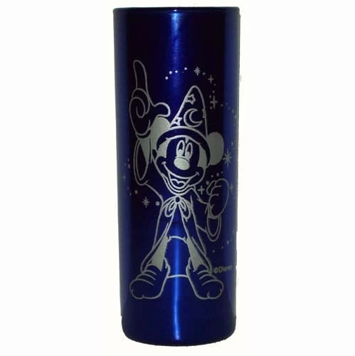 The perfect way to bring the parks home for the adults on the trip, this signature series of shot glasses offered at Disney feature the signatures of the characters on a tall shot glass that is metallic in color. This one features Mickey Mouse on a blue background and Mickey’s signature on the opposite side of his outline.