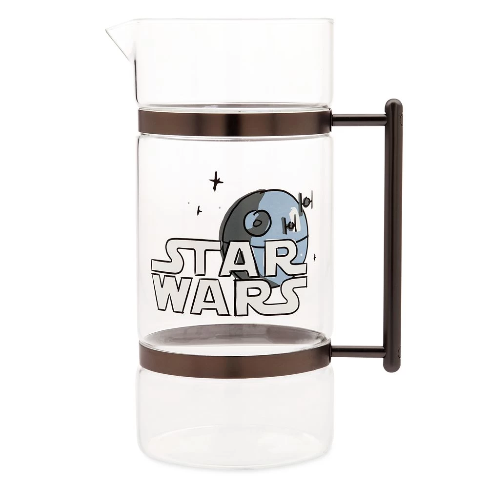 For Star Wars fans, this glass pitcher is sure to be a clear favorite. Created as part of the Star Wars Artist Series, it features the distinctive artwork of Will Gay. The iconic Star Wars logo, Death Star and TIE fighters are pictured in Gay’s whimsical style on one side of this pitcher that includes a stylish metal handle.