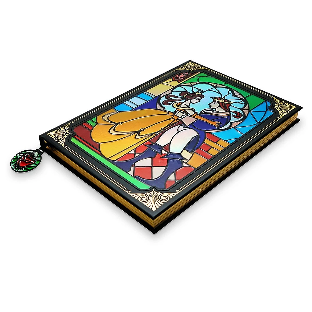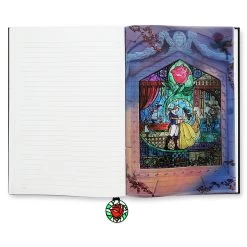 Once upon a time, a prince lived in a shining castle…in a journal containing stunning images of the stained glass windows from Beauty and the Beast. Write your own story, full of adventure, on the lined pages, and hold your place with the ribbon bookmark and Enchanted Rose charm.