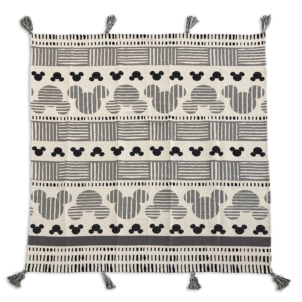 Give your homestead an elegant accent with this woven cotton throw blanket featuring neutral tones and a Mickey icon pattern, part of the rustic collection for your cottage or castle.