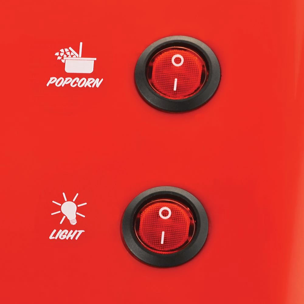 - Slide-out popcorn tray for easy serving