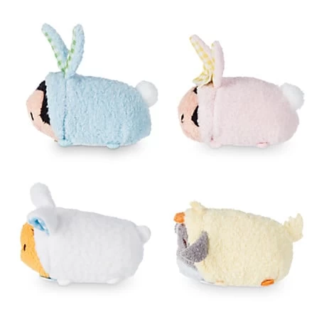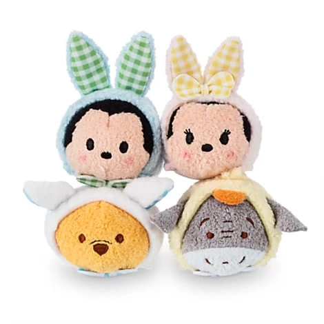 Your favorite Disney friends have a spring fling for this Mini ”Tsum Tsum” Plush Collection. Stackably soft, Mickey, Minnie, Pooh, and Eeyore are all dressed-up as bunnies and chicks and tucked in an adorable plush basket.