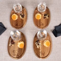 In which these charming Winnie the Pooh plates hold onto your beverage so you have a free hand to enjoy delicious appetizers or snacks. These genuine acacia wood plates have a cutout designed to hold a stemmed glass and a shallow lipped edge to keep tiny bites in place. (Glassware not included.) Elegant and durable, each plate features different art of Pooh, Piglet, Tigger and Eeyore that you and your guests are sure to love. Show of hands, please.