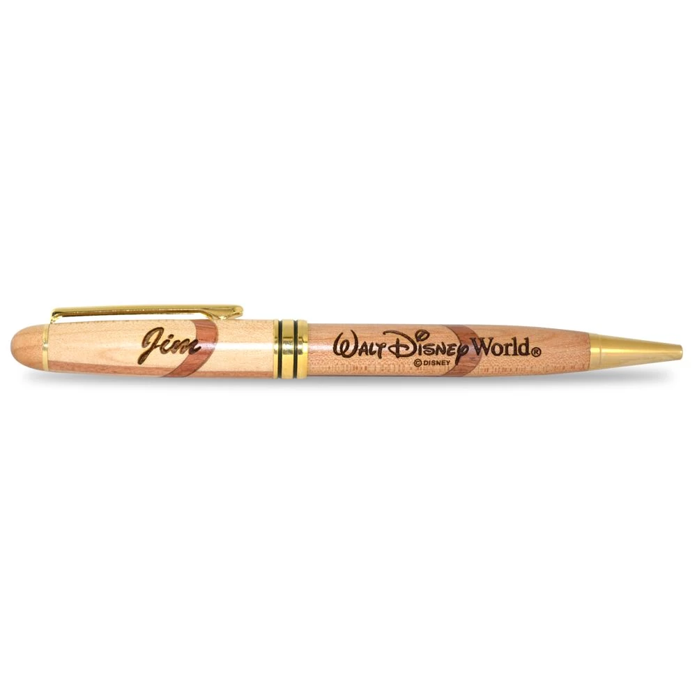 The elegant design of this pen is crafted using two types of wood and ingrained with classic Disney style. Created by Arribas, it features ”Walt Disney World” and can be personalized as a reminder of your park visit, or a great gift.